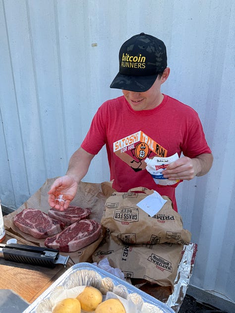 Thank you to all who came out, ran, and donated. Such a fun day filled with steak, running, dogs, vibes, and bitcoin.